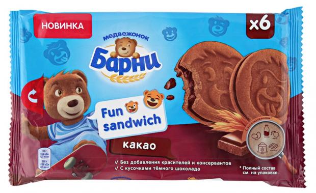 pirozhnoe biskvitnoe barni sendvich s kakao i kusochkami temnogo shokolada 180 g