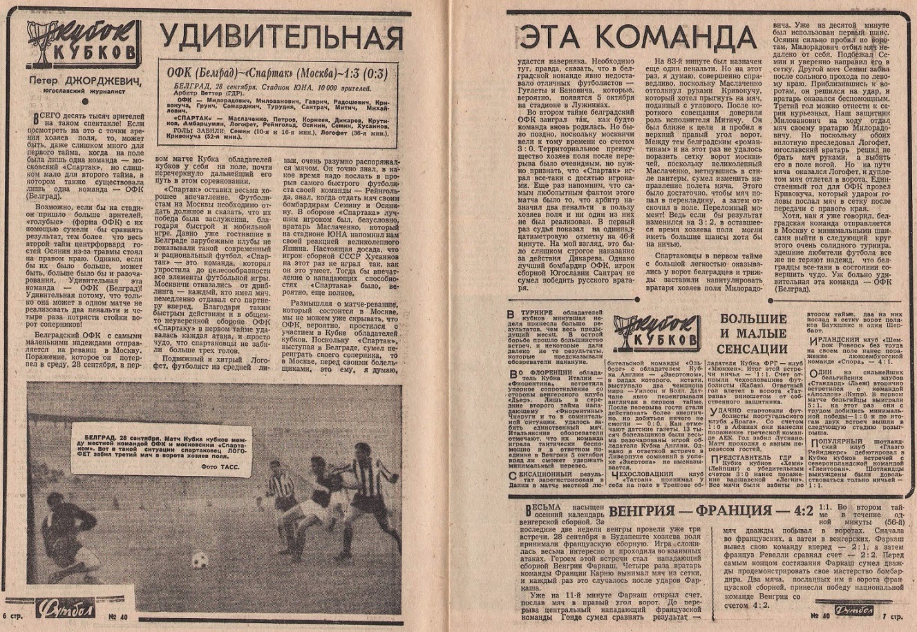 sport muzyka kino programmka k matchu kubka kubkov ofk belgrad yugoslaviya spartak moskva 28 09 1966