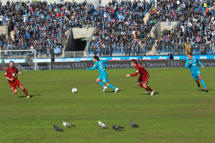 trava na stadione metallurg vzoshla