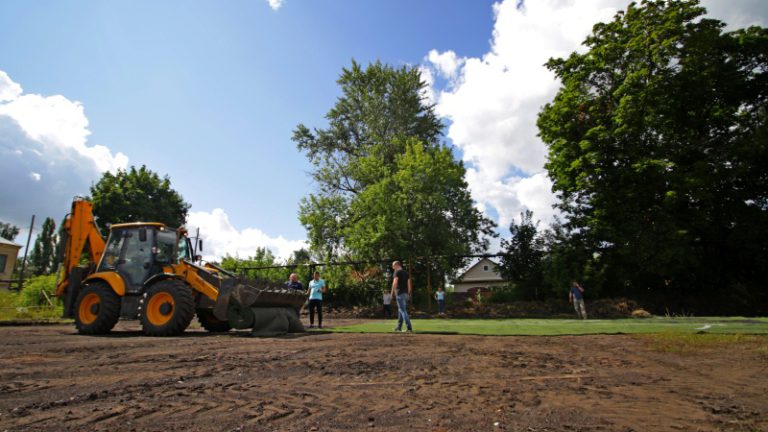 v kamenske uralskom zavershaetsya ukladka iskusstvennogo gazona futbolnogo polya na stadione shkoly 25