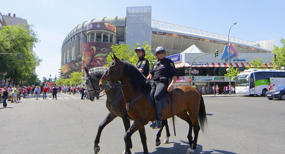 konnaya policiya patruliruet na stadione