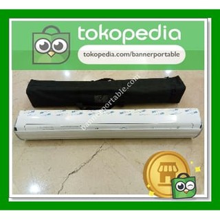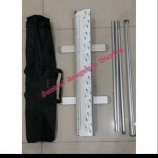 banner stand tiang kakian model roll up aluminium ukuran 80x200 asli
